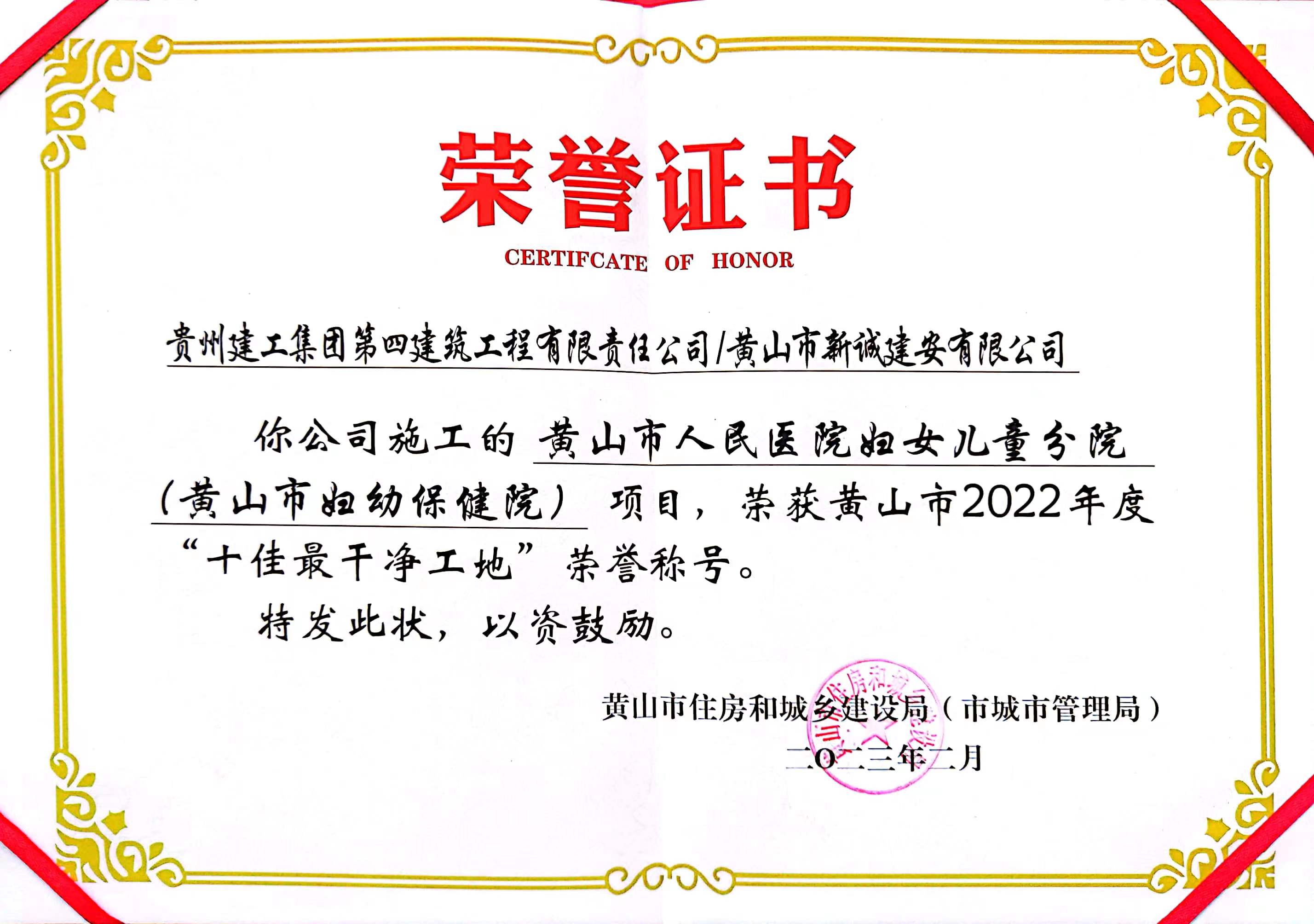 黃山市人民醫(yī)院婦女兒童分院項目榮獲2022年度“十佳最干凈工地”榮譽稱號