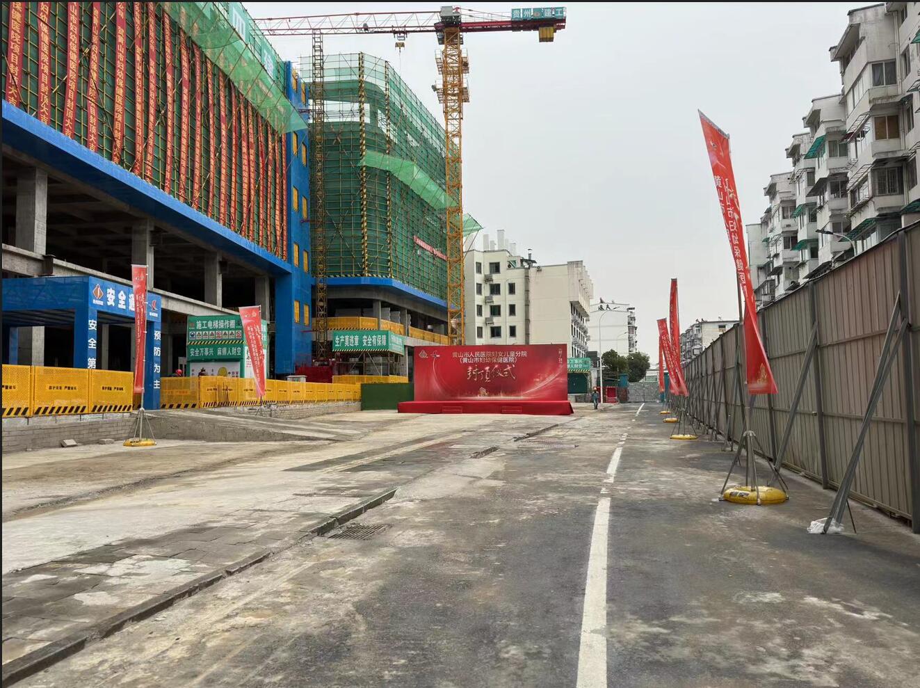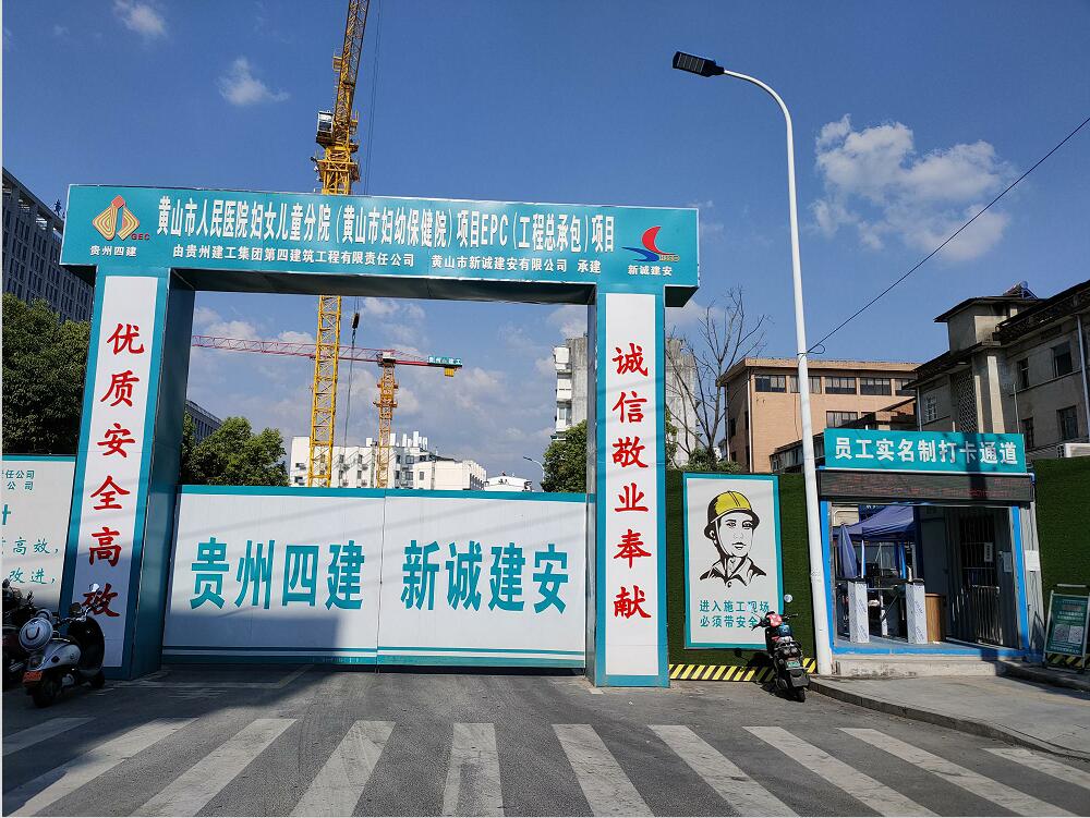在安徽省黃山市人民醫(yī)院婦女兒童分院(黃山市婦幼保健院)建設(shè)工地上,綠植圍擋一目了然,各類標語生動鮮明,降塵、霧炮、噴淋系統(tǒng)等一應(yīng)俱全,現(xiàn)場標準化、工具化、定型化管理科學(xué)規(guī)范,給人一種耳目一新的感覺。